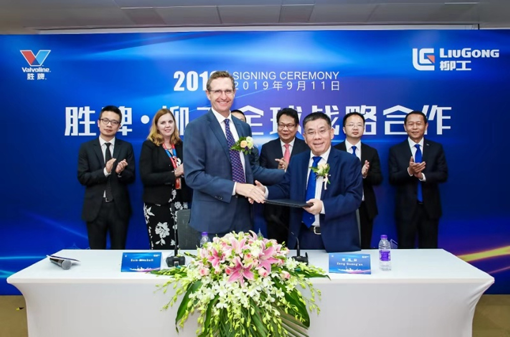 Shanghai, China, September 11, 2019 — Guangxi Liugong Group Co., Ltd. (LiuGong) and Valvoline Inc. (Valvoline) held a signing ceremony in Shanghai to announce a global partnership. Mr. Zeng Guang’an, Chairman of LiuGong Group and Mr. Sam Mitchell, CEO of Valvoline, signed a memorandum of understanding, opening a new chapter of cooperation as Valvoline becomes the preferred provider of lubricants for LiuGong equipment outside of China.