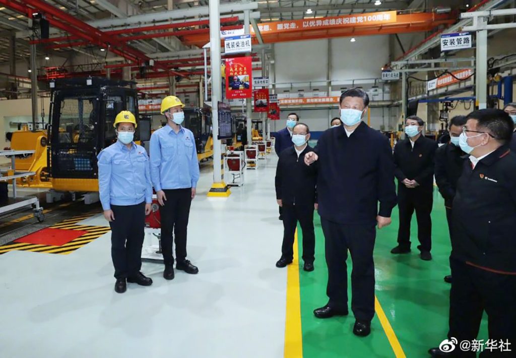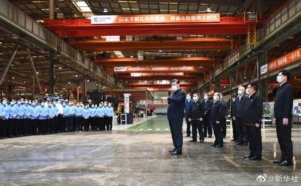 Xi visited machinery manufacturer Guangxi Liugong Group Co Ltd and a food-processing zone for local specialty Luosifen rice noodles.