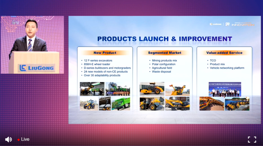 During the Conference, Colombian coal mine customers and Philippine infrastructure customers shared experiences and praised LiuGong’s combined product solutions through videos and live broadcasts.