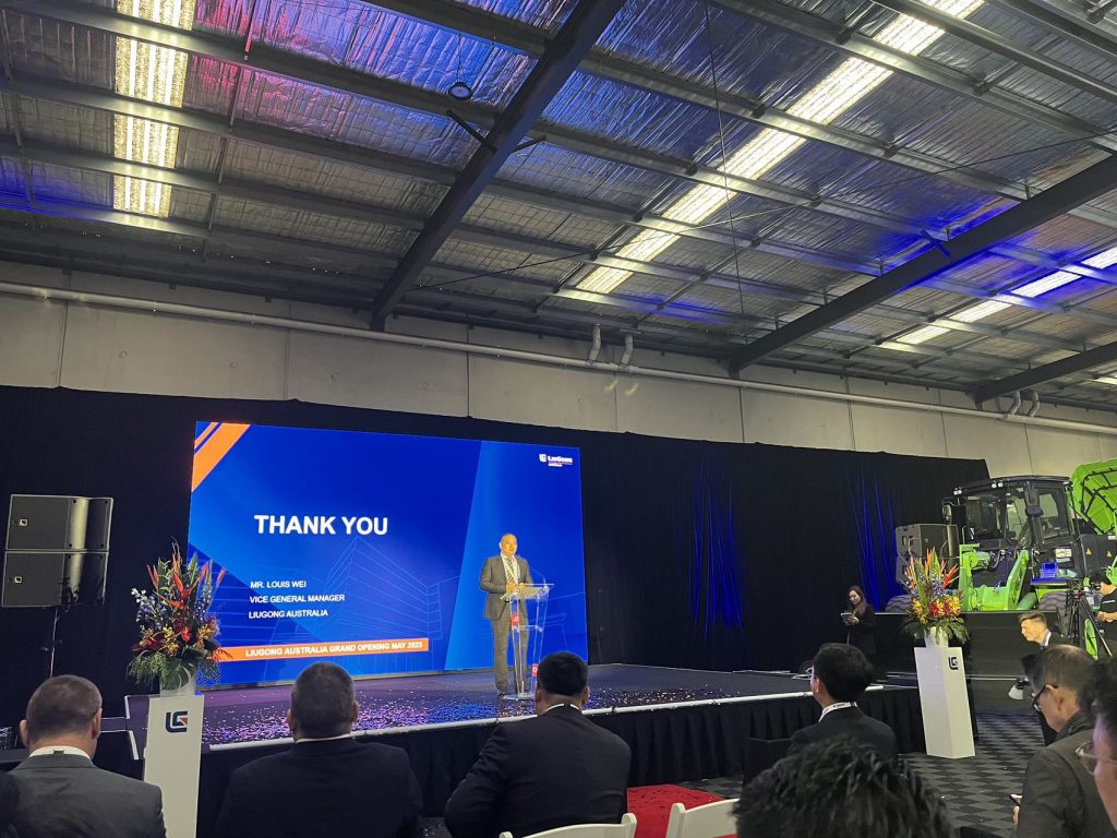 May 10, 2023, Melbourne – Today, LiuGong Australia held a grand opening ceremony in Melbourne and launched 856HE MAX electric loader & 9027FE electric excavator during the event. Luo Guobing, Senior Vice President of LiuGong, Pan Yuansheng, Chairman of China Chamber of Commerce in Australia, Melbourne Branch, key Australian customers and guests, as well as many local media, attended the ceremony.