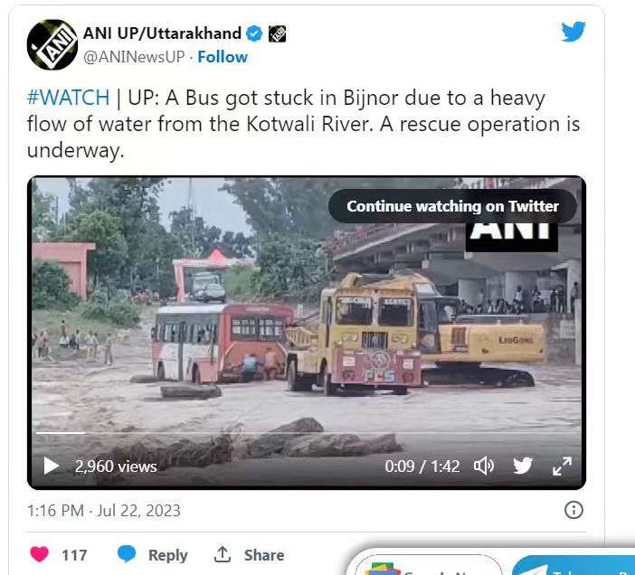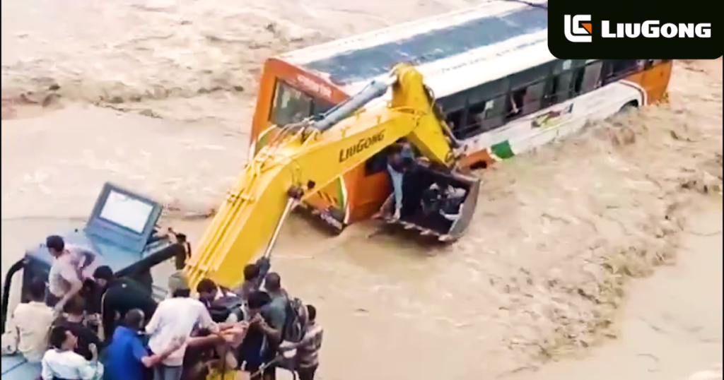With the monsoon in full swing in India, several regions have been facing extreme weather conditions. In a video released by the Indian news agency ANI on July 22, a bus was stranded on a waterlogged road in Bijnor and a 922E excavator was working hard to rescue the passengers trapped in the bus.