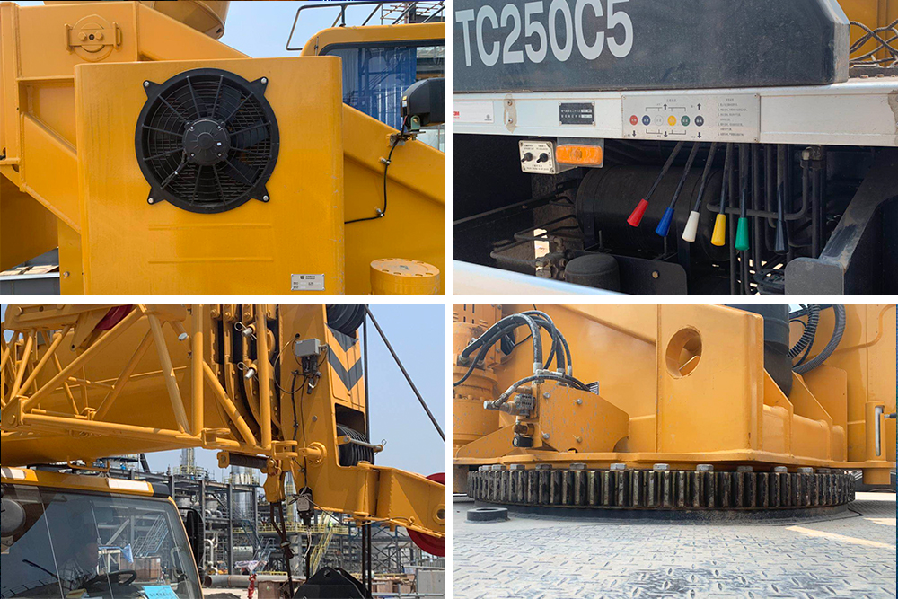 柳工TC250C5在发动机的选择上,采用ISD300 50发动机,在液压系统配有变量柱塞泵加三联齿轮泵,在起升机构上配有轴式高压自动变量柱塞马达及双折线绳槽的卷扬减速机,在回转系统配有轴向柱塞定量马达,驱动回转减速机,以及法士特的9档变速箱,关键零部件都是进口或国内一线品牌。