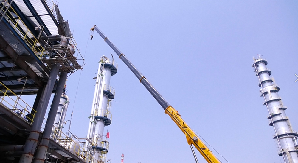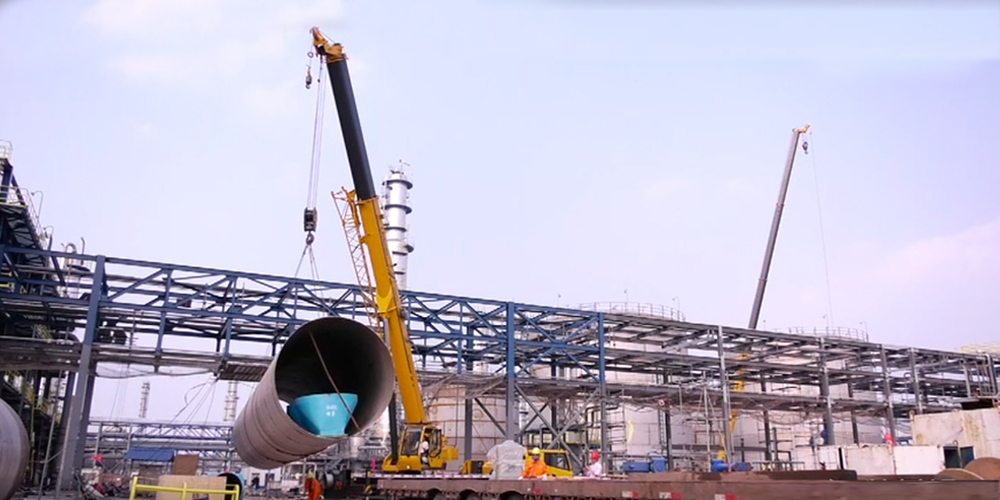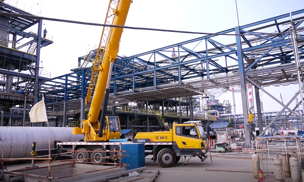 初入施工工地,宏大的场面深深震撼到测评人员,脑子里唯一的念头是:场面如此恢弘的工程,对起重机用户的资质要求应该相当的高,由此可见,柳工沉淀在起重机核心客户圈的影响力。值得说明的一点是,由于石化工地管控严格,本次测评的不同项目是由多款在该工地施工的柳工TC250C5设备合力完成,也侧面反映柳工TC250C5整体性能的稳定性。