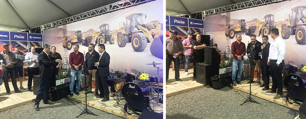 同时,阿雷格里港市市长先生也莅临柳工展台,进行了总结发言,为柳工将士们打气助威,与柳工拉美公司总经理何大伟先生亲切握手,并向柳工对当地经济建设发展做出的贡献致以诚挚的谢意,鼓励柳工继续扎根专业产品开发,将领先技术广泛运用到当地建设中,给当地客户和社会发展带来更多的价值。