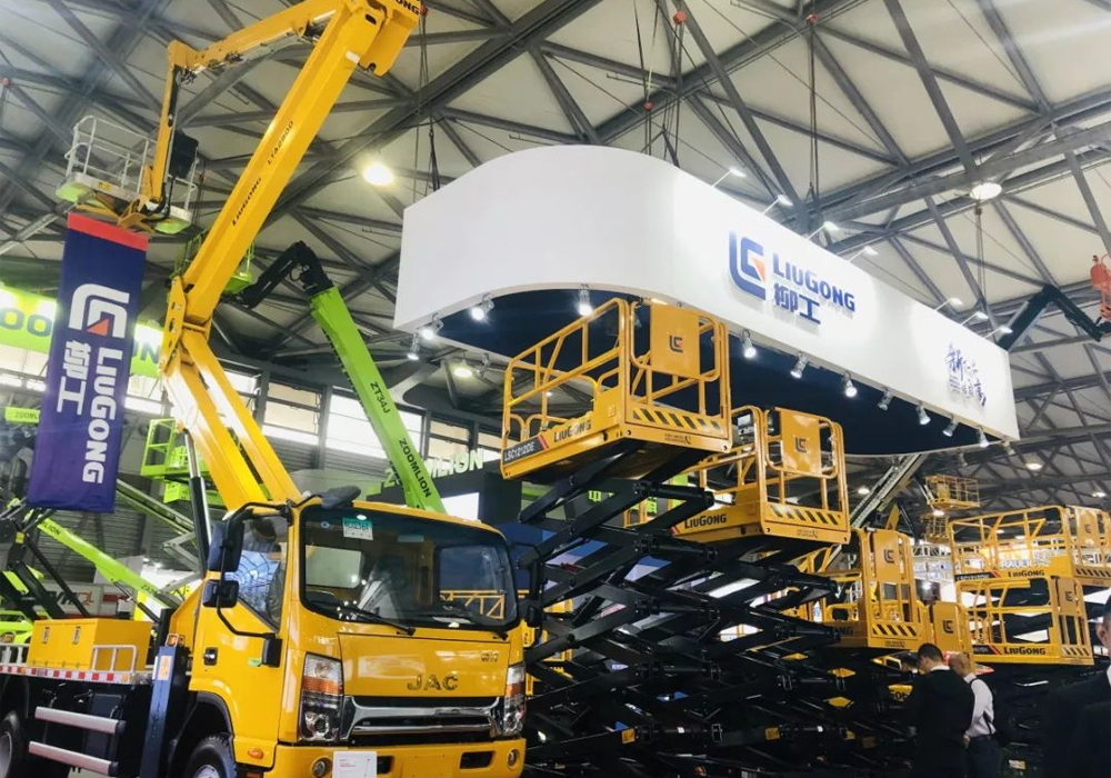 安徽柳工此次携12台全新D系列高空作业设备前往参展,并现场举行了“新无界·境自高”为主题的D系列高空作业设备发布会。