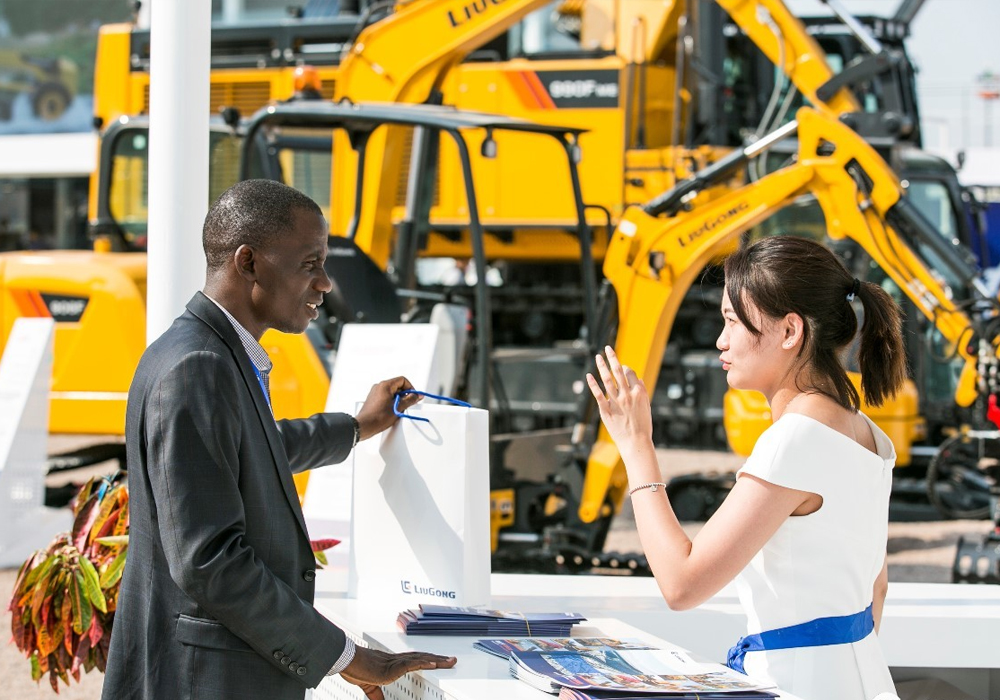 图为柳工2019北京展上吸引海外商客关注