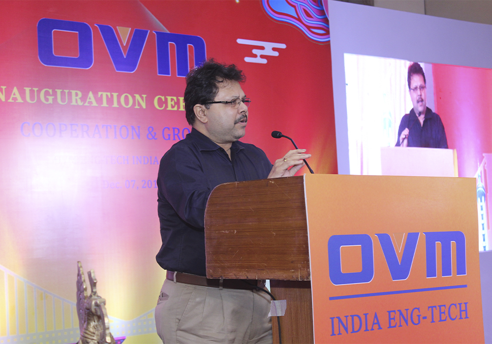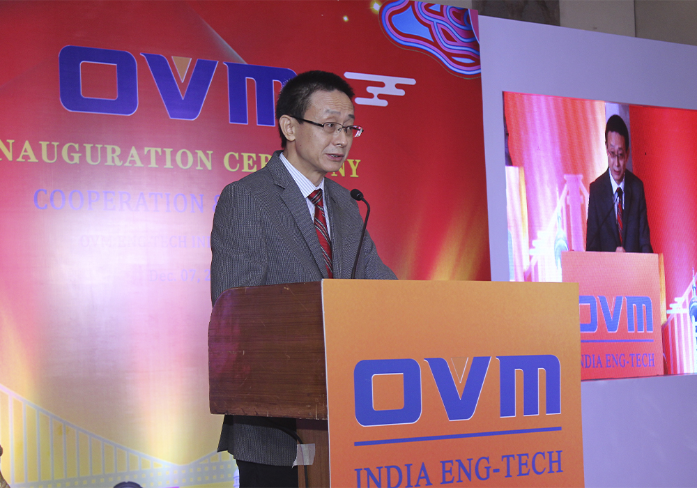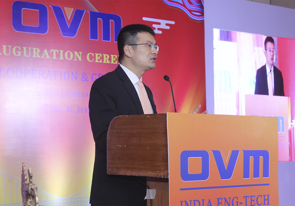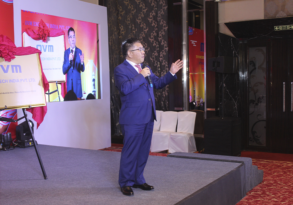 会议由印度欧维姆市场总监李双荣主持。欧维姆公司副总经理兼印度欧维姆公司董事总经理侯刚致欢迎辞。侯刚首先诠释仪式主题–合作成长的含义,向与会嘉宾介绍了欧维姆公司发展历史及企业文化,以及在印度的业务开拓历程,并分享欧维姆印度发展计划。侯刚表示:印度欧维姆将坚持“合作创造价值”原则,依靠股东、信任伙伴、团结团队,与印度各界朋友携手,共同开创全新征程。