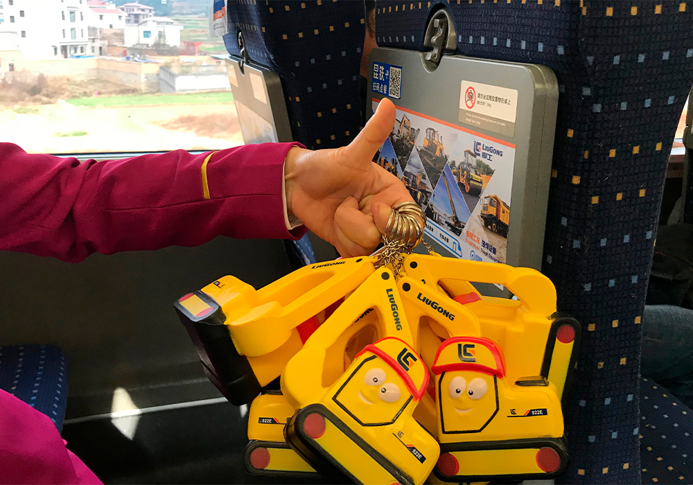 柳工趣味知识问答、抖音直播口令赢新年礼包、集赞好礼送等环节让人眼花缭乱,高潮迭起。愉快的欢笑声时不时在高铁列车上响起。