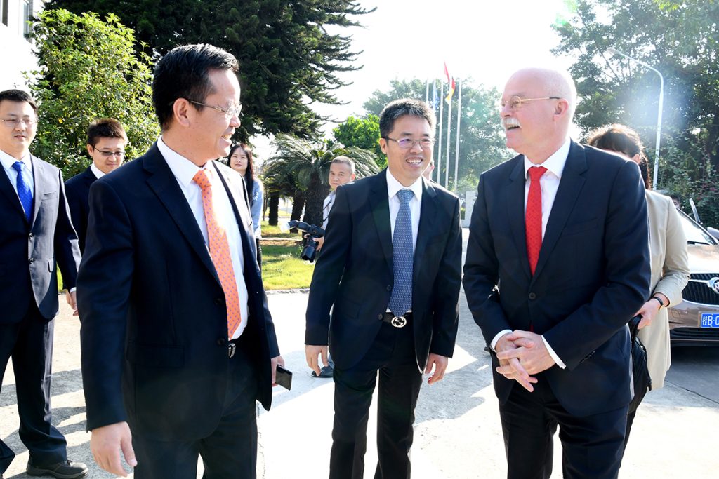 文武对Clemens von Goetze一行的到访表示热烈欢迎,他重点向Clemens von Goetze分享了柳州采埃孚成立25年来的发展成果,柳工装载机在柳州采埃孚优质产品的助力下取得的骄人成绩。他表示,成绩的取得是中德双方合作友谊的见证。