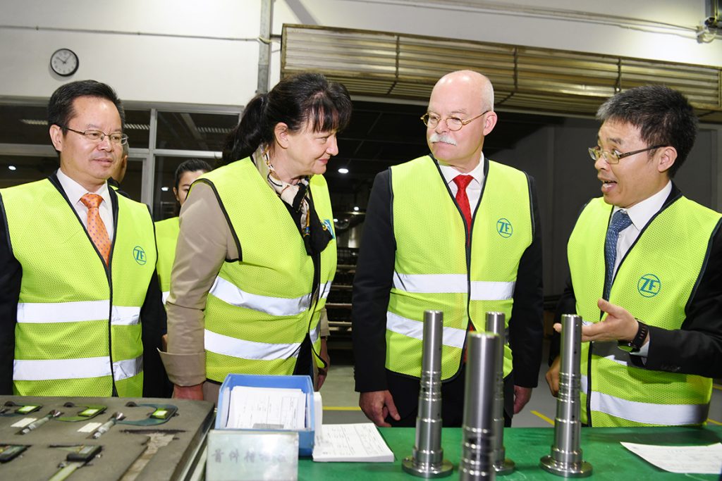 11月11日,德国驻华大使Clemens von Goetze夫妇一行到访柳工集团,星空网页版官网_星空(中国)副总裁、装载机业务群党委书记、董事长文武代表柳工接待并陪同大使一行参观了柳工全球研发中心和柳州采埃孚机械有限公司(以下简称:柳州采埃孚)。
