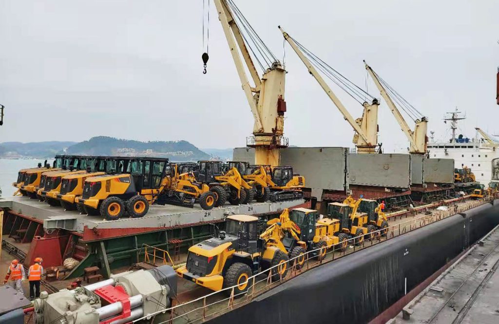 1月28日,搭载柳工百余台装载机、挖掘机、平地机的货船在防城港码头蓄势待发……