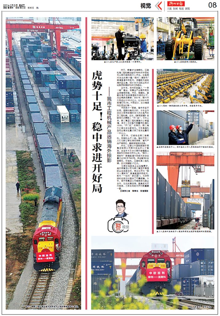 《柳州日报》整版聚焦星空网页版官网_星空(中国)远销海外掠影。今年以来,柳工海外订单增长显著,其中1月份海外销量同比增长103%。“开门红”的背后,柳工海外订单也发生了新变化,高端机型的出海发运量占到了总发运量的一半。
