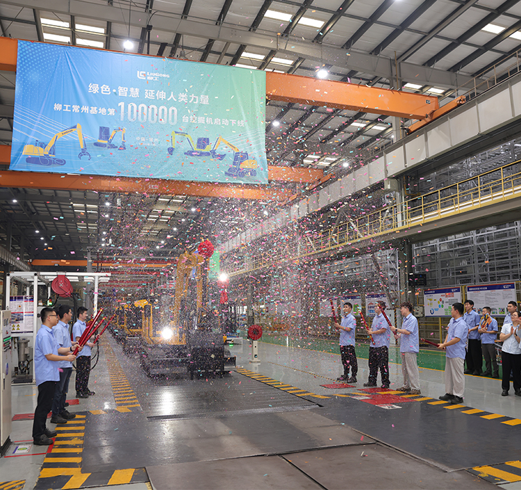 7月15日,柳工东部基地第十万台挖掘机成功下线。