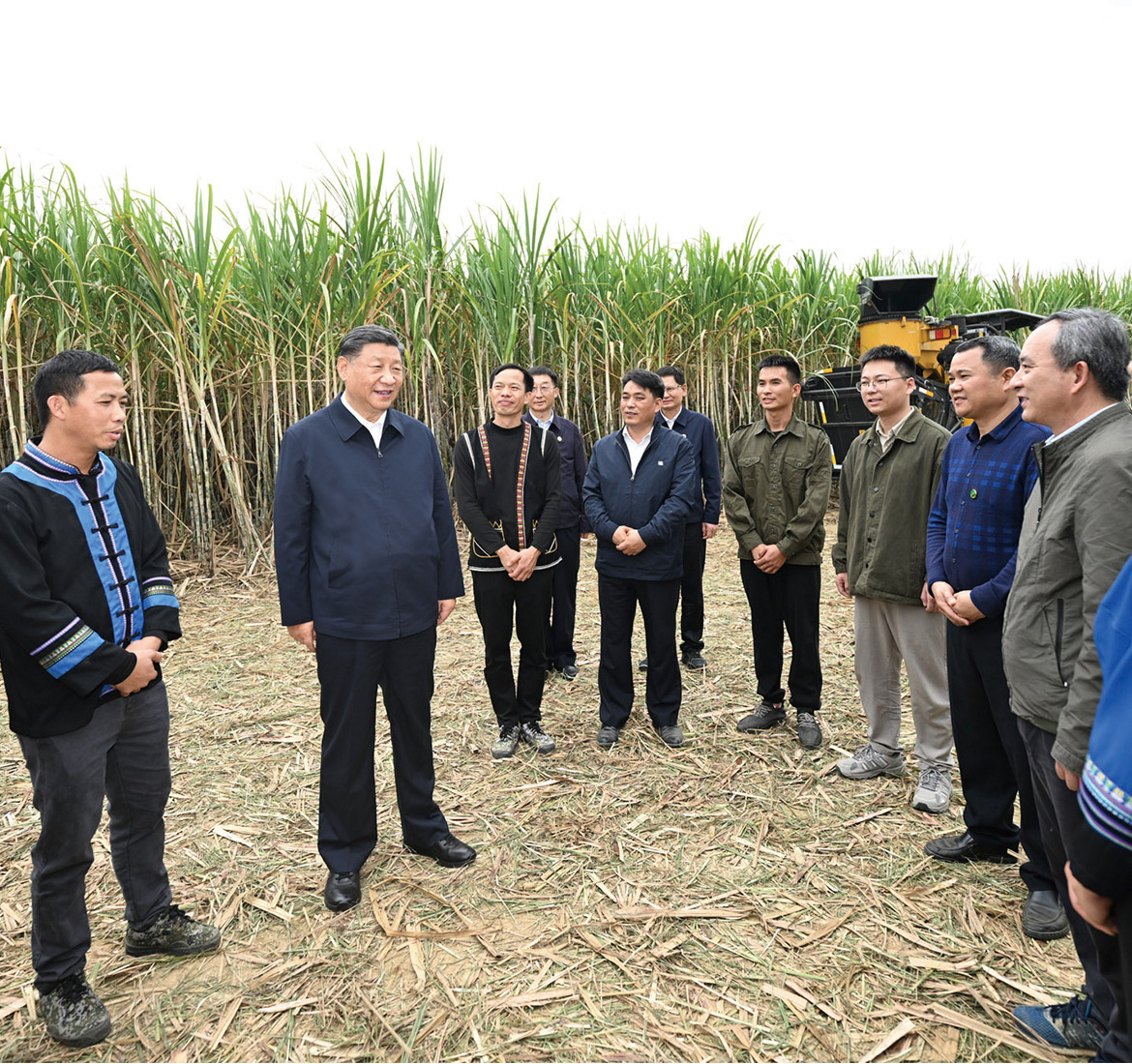 12月14日下午,习近平总书记来到广西来宾市国家现代农业产业园黄安优质“双高”糖料蔗基地,了解甘蔗良种繁育、种植收成、糖产业发展、甘蔗生产机械化作业等情况,并现场观看柳工成套大、中、小型农业机械设备作业。