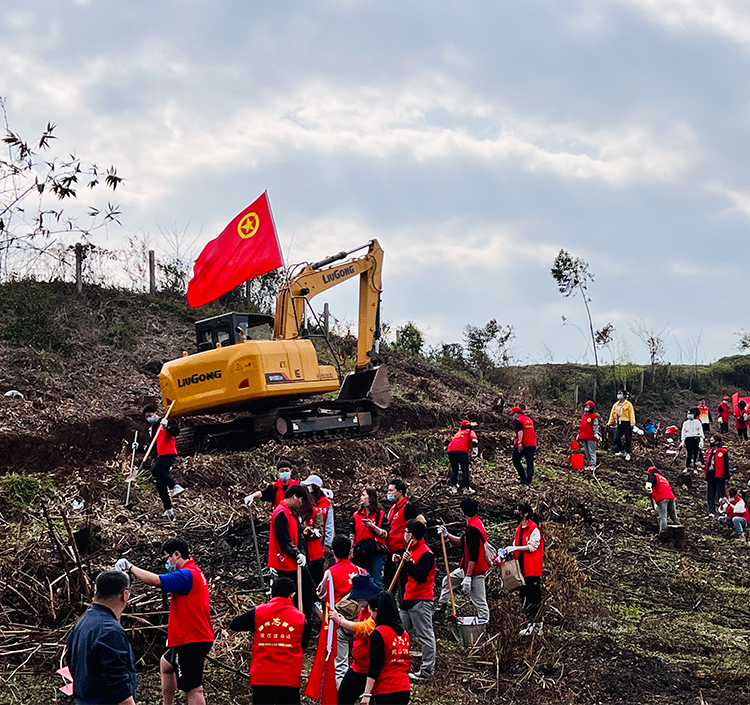 3月12日,第44个全民义务植树节,柳工团委积极响应团市委号召,组织近三十名青年志愿者携一台柳工913E小型挖掘机到柳州市莲花山开展“植树造林,青春先行”义务植树活动。