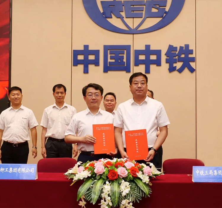 日前,柳工与中铁三局集团有限公司(以下简称:中铁三局)签署战略合作签约仪式举行。中铁三局党委副书记、总经理李新远,柳工集团党委书记、董事长郑津出席签约仪式。