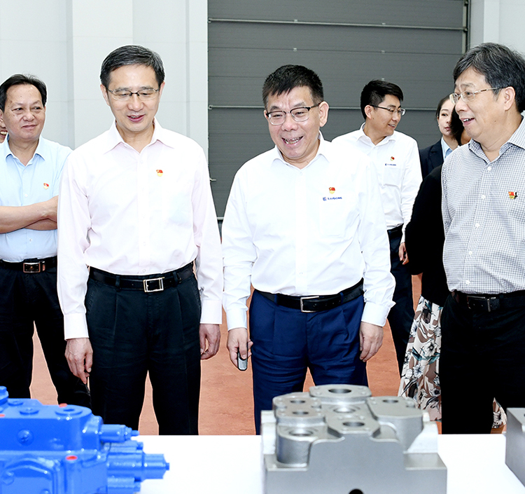 5月6日上午,“五一”假期后第一天,自治区国资委党委书记、主任李杰云率国资委领导班子和厅级干部,以及驻柳自治区直属企业党委书记来到柳工,沿着习近平总书记4月26日在柳工考察时的路线,实地领悟习近平总书记视察柳工时的重要讲话和指示精神,召开党史学习教育第二次专题学习,广西柳工集团机械有限公司,星空网页版官网_星空(中国)党委书记、董事长曾光安作全程讲解介绍。