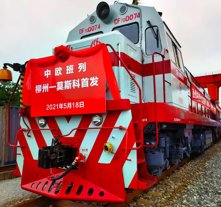 5月18日上午,柳工57台装载机、4台平地机搭乘75082车次“柳州-莫斯科”广西首趟跨境直通中欧班列,从柳州南站出发一路向北,驶往俄罗斯莫斯科、叶卡捷琳堡、新西伯利亚等地。