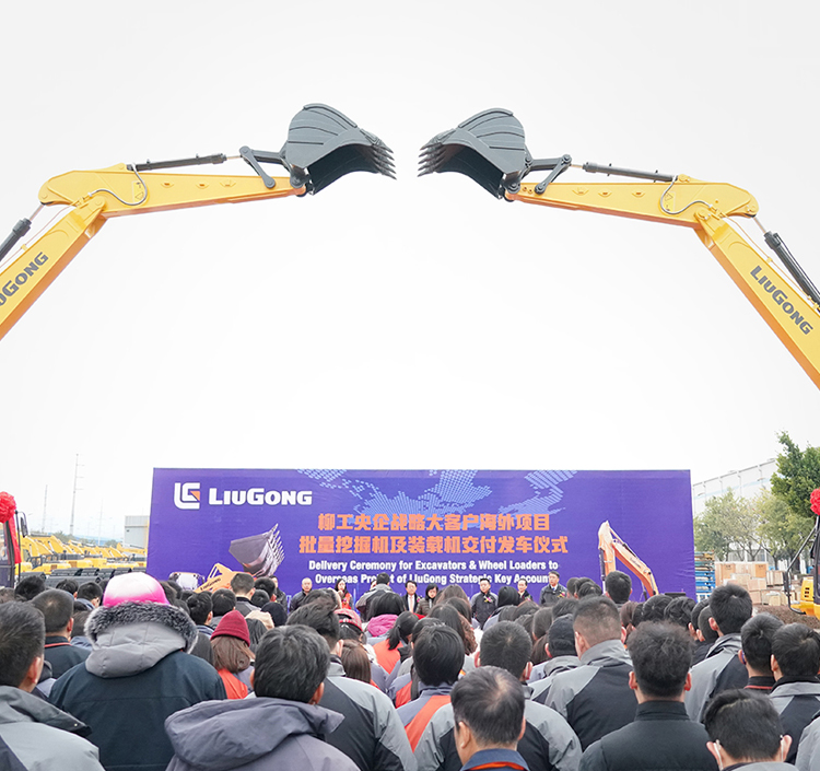 2020年12月16日,柳工央企大客户海外项目批量挖掘机及装载机交付发车仪式在柳工全球研发中心举行。